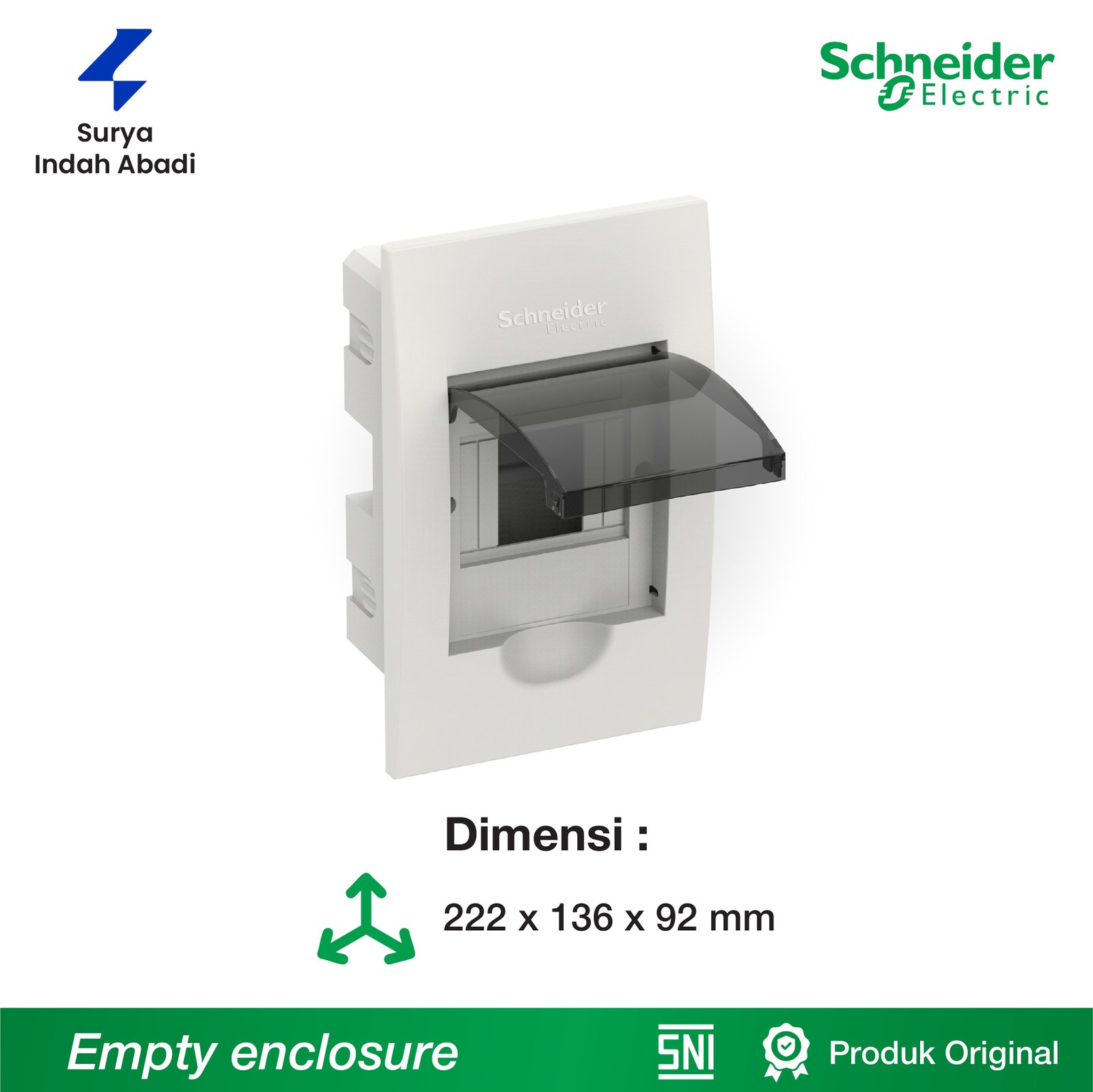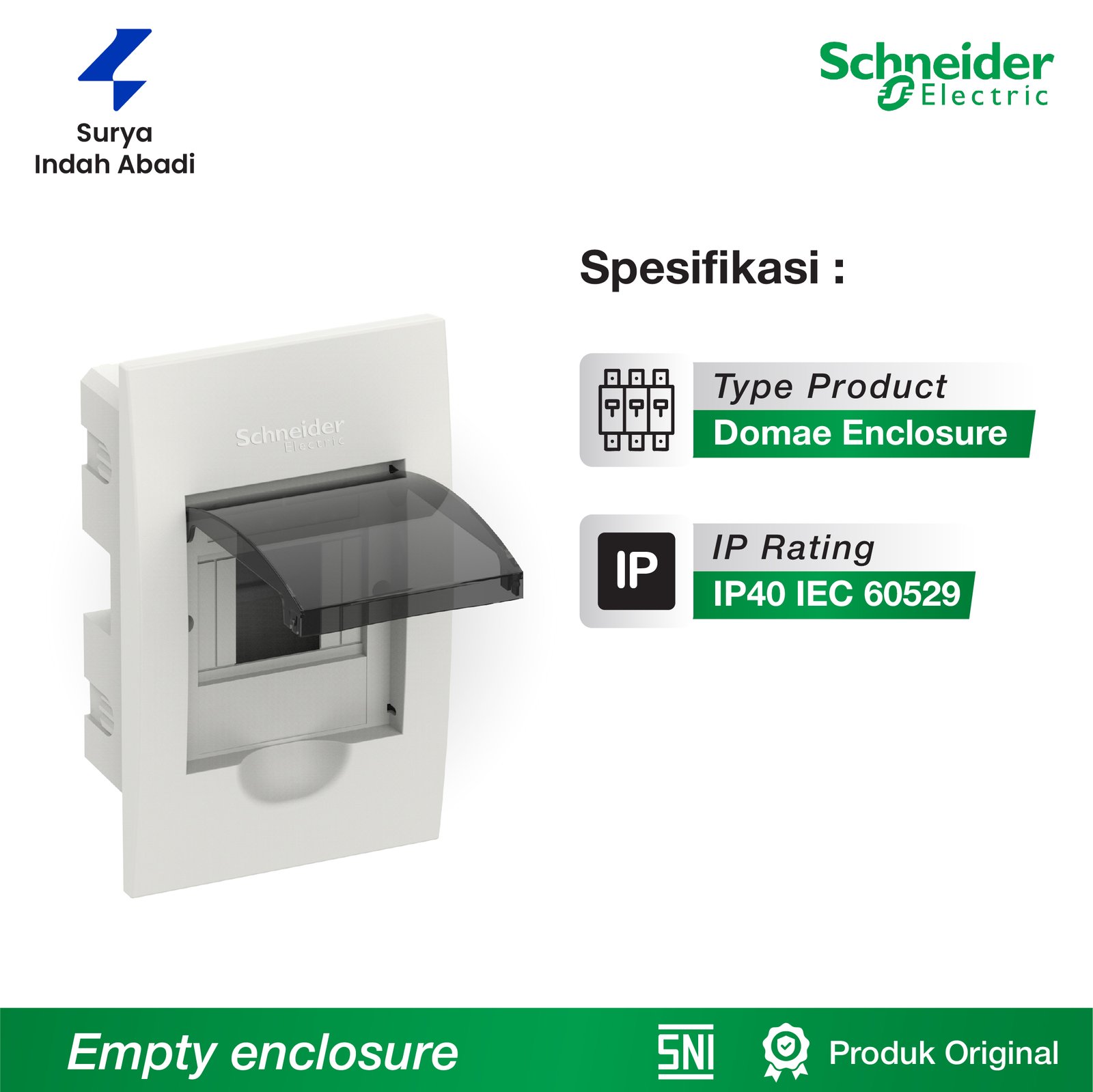 Box MCB Schneider Electric 4 Modul/Grup (Seri Domae – DOMH12104F) adalah panel distribusi listrik premium yang dirancang untuk instalasi inbow (tanam) pada dinding. Box ini berfungsi sebagai rumah pelindung dan tempat peletakan hingga 4 modul MCB. Dengan desain modern dan material berkualitas, box ini adalah solusi ideal untuk instalasi listrik di rumah tinggal, apartemen, atau kantor kecil.