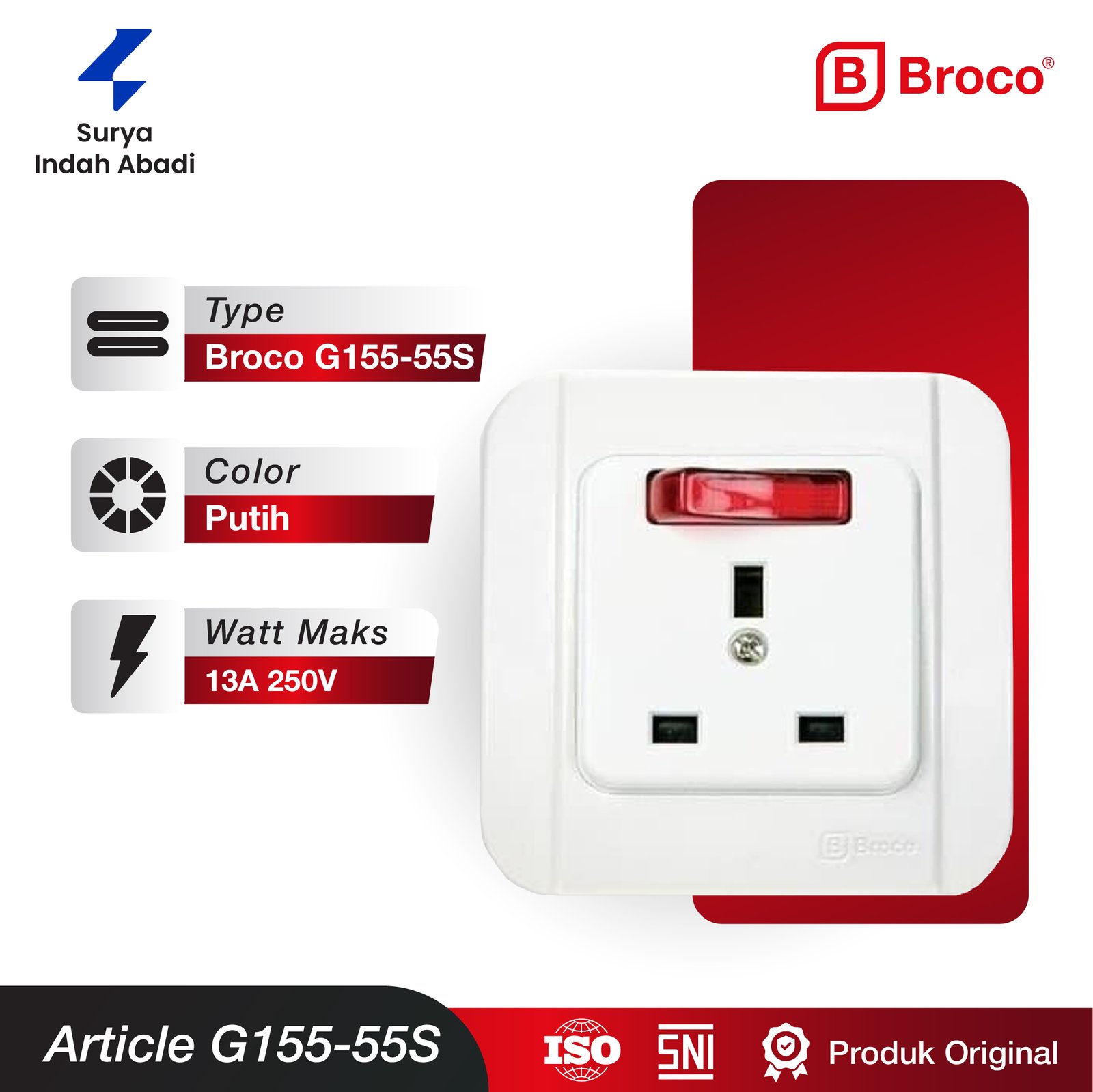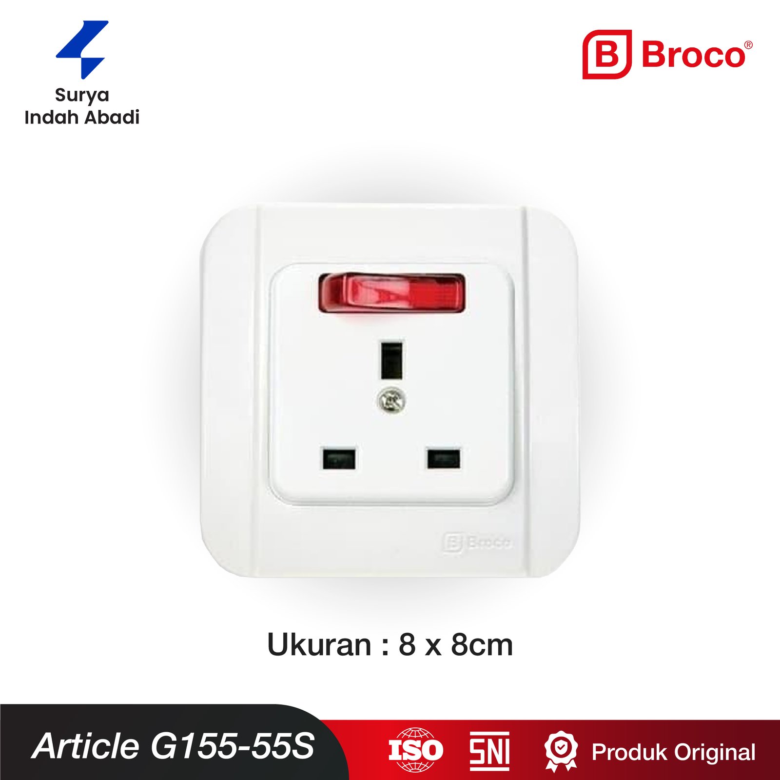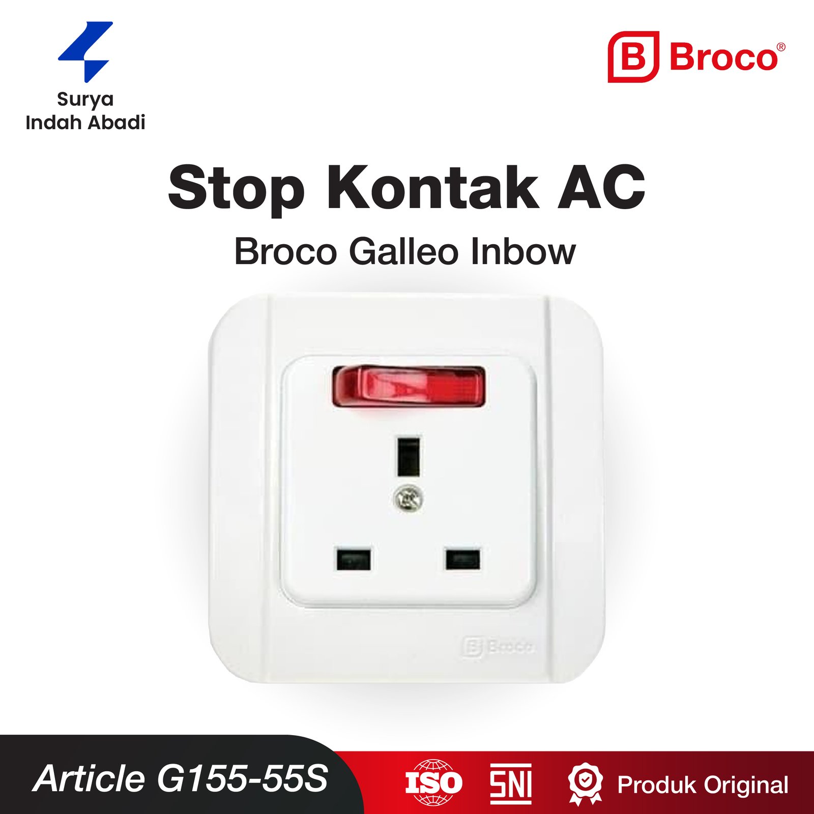Daya Tahan Tinggi (High Amperage): Didesain untuk menangani beban listrik besar yang dihasilkan oleh AC (umumnya 1/2 PK hingga 2 PK ke atas). Sebagian besar model Broco AC memiliki kapasitas hingga 16A / 250V, memastikan stop kontak tidak mudah panas atau meleleh.