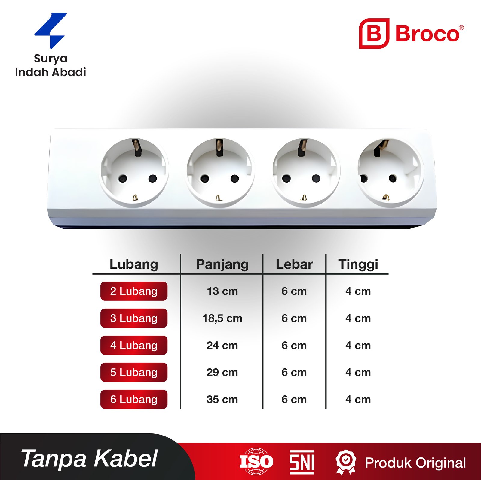 Terminal Broco Multi Lubang (2-6 port) dengan Arde Kuningan. Desain fungsional yang tahan panas dan material Fire Retardant. Menyediakan daya yang aman untuk berbagai perangkat elektronik Anda secara bersamaan.