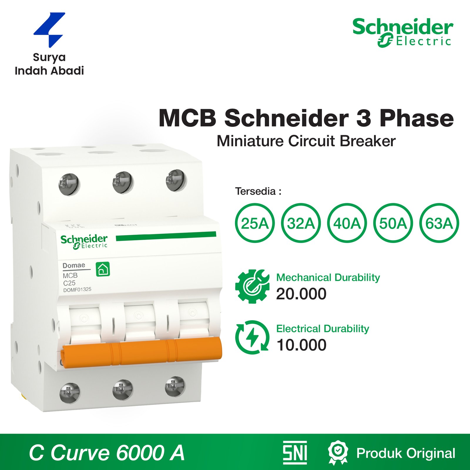 MCB (Miniature Circuit Breaker) 3 Phase Schneider Electric adalah perangkat proteksi sirkuit premium yang dirancang khusus untuk instalasi listrik 3 fasa (tiga jalur) pada lingkungan komersial, gedung besar, industri, dan sistem yang menggunakan motor listrik berdaya besar.